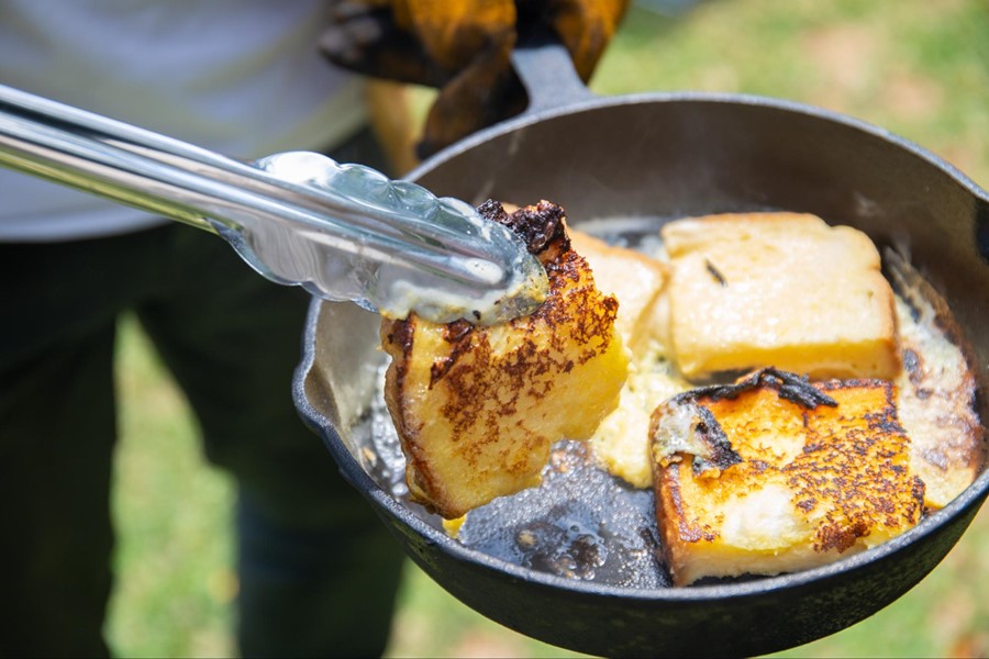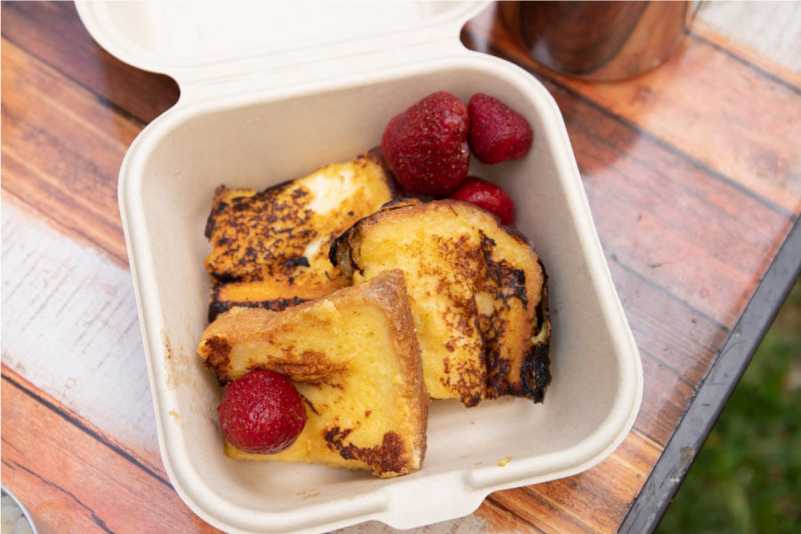 キャンプってスイーツもできるんですね。とってもかわいい。ちゃんと、しっとりふわふわなフレンチトーストになりました。