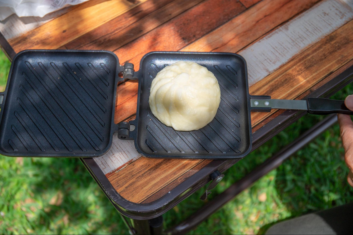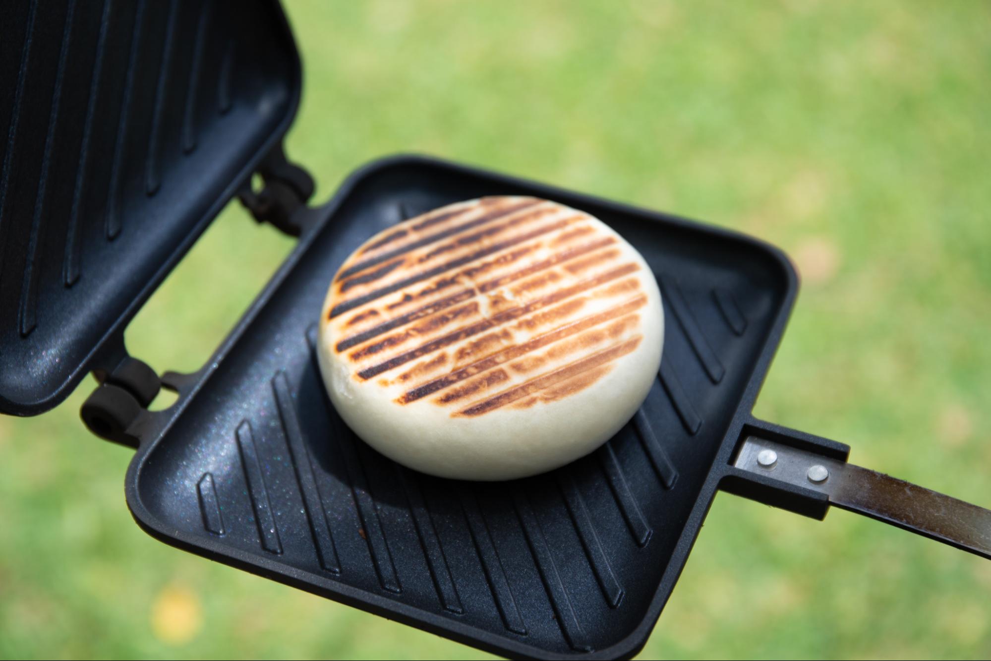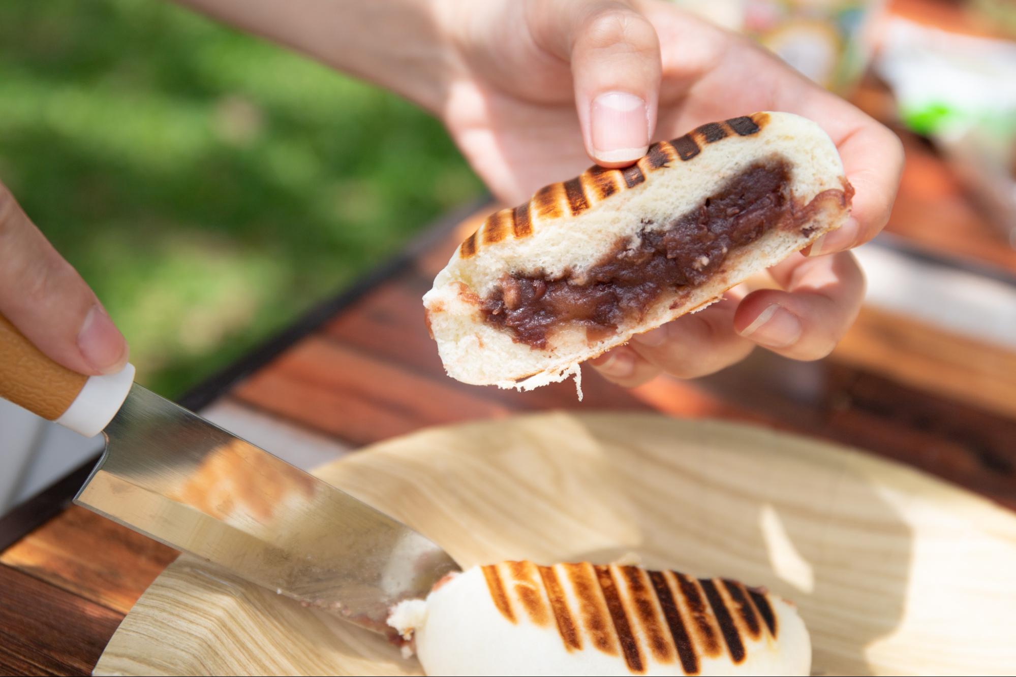 キャンプ初心者のわたしは正直「なぜ?」と思いました。だって、もう完成してますよね?肉まん。蒸されて完成した肉まんを、なぜ、どうして、焼くの?どうなるの?