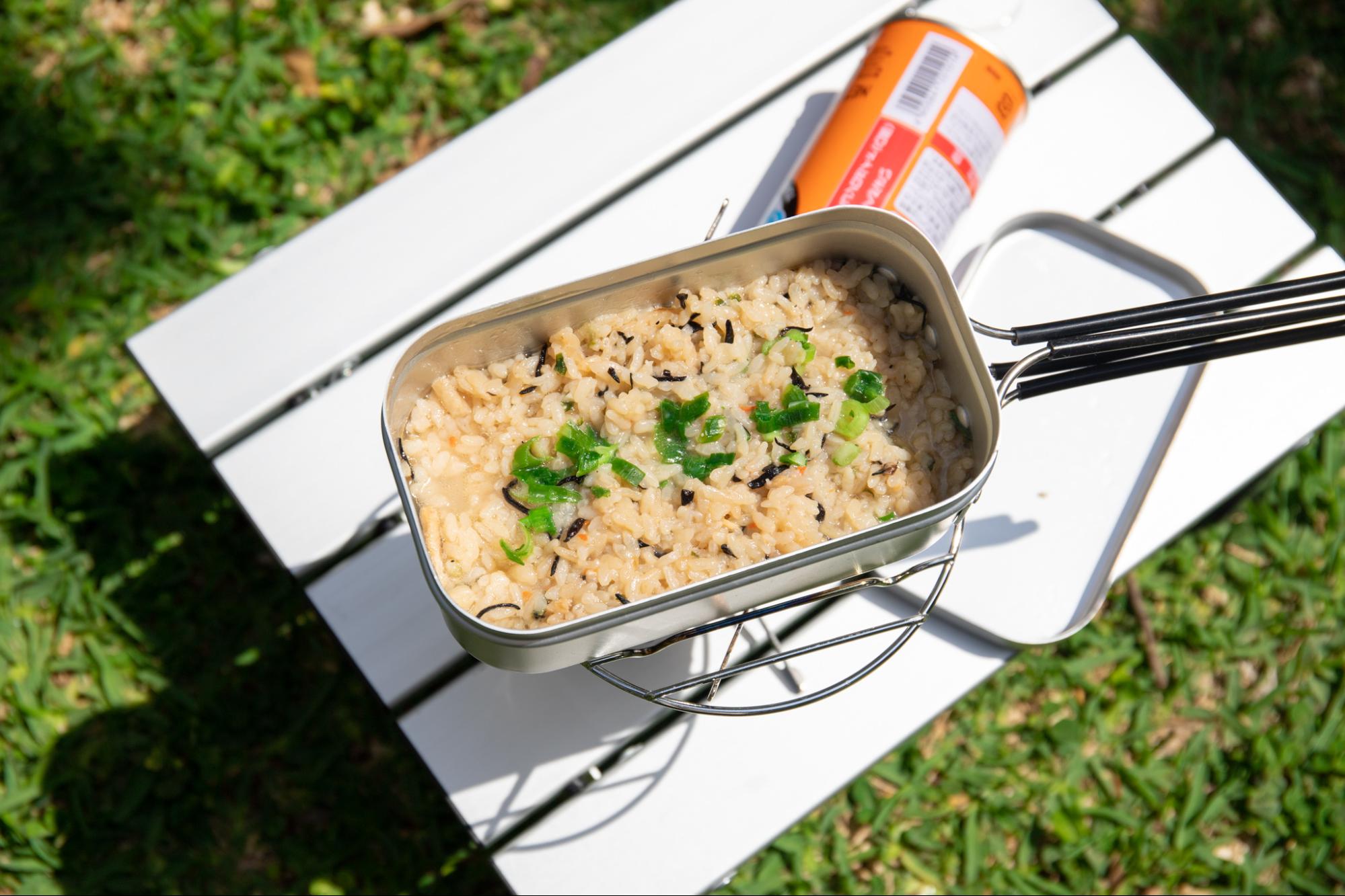 通常の炊飯器だと1時間くらいかかるものが、メスティンだと炊飯15分と蒸らし15分。なんとトータルおよそ30分でごはんが炊けてしまいます。