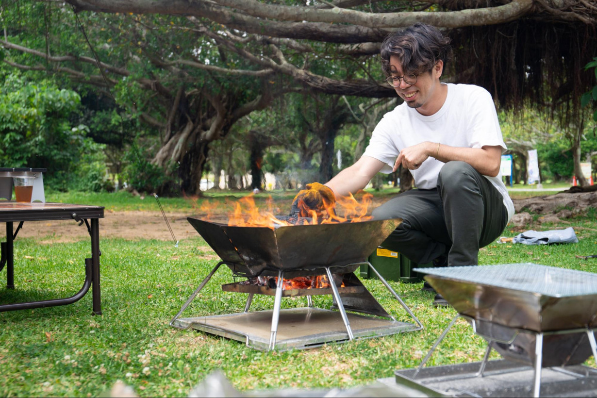 普段よくキャンプをしている知念さんが手際よく焼いてくれました。この日は風が少なかったので火は安定していましたが、風が強い日は十分に注意しましょう。
