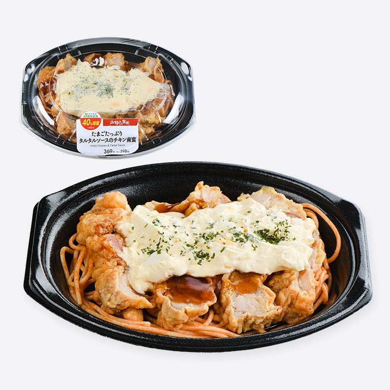 40%増量作戦対象商品。たまごたっぷりタルタルソースのチキン南蛮です。タルタルソースも、チキン南蛮も全て40%増量。