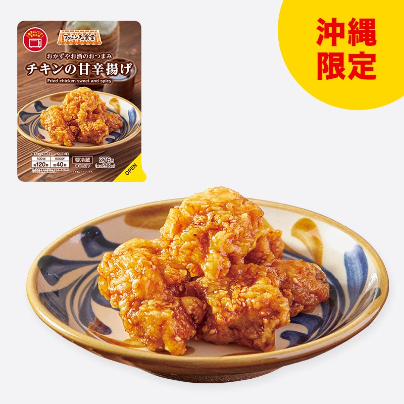 2021.09.07 ファミンチュ食堂 チキンの甘辛揚げ ファミマ新商品 シェア Tweet 沖縄の食卓によく出てくる人気メニューがいつでも手軽に味わえる「ファミンチュ食堂」。おつまみとしても人気の甘辛ダレで和えたチキンです。 価格298円(税込) 発売日2021年9月7日 一部店舗にて取扱いのない場合がございます。 掲載の新商品は今後、パッケージ・規格・価格の変更及び販売終了となる場合がございます。