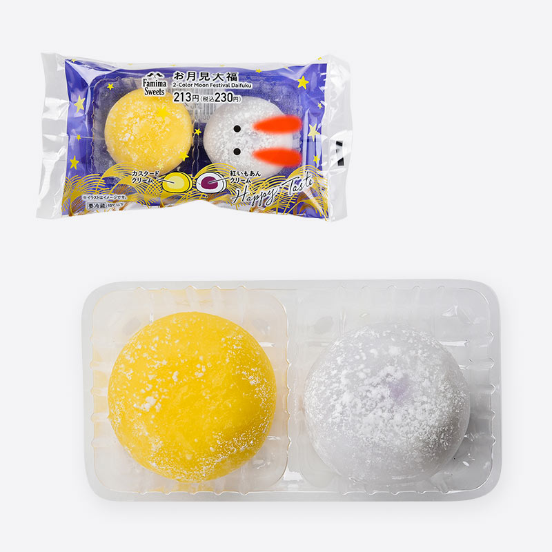 【沖縄限定商品】お月見にあわせた和生菓子。カスタードクリーム大福と、紅いもあんクリーム大福の2種類の味が楽しめます。
