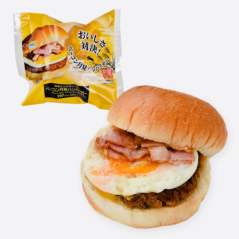 2021.09.21 ベーコン 月見ハンバーガー ファミマ新商品 シェア Tweet ふっくらとしたバンズにパティ、目玉焼き、ベーコンをトッピングした、秋の十五夜の月をイメージしたバーガーです。 価格320円(税込) 発売日2021年9月21日 一部店舗にて取扱いのない場合がございます。 掲載の新商品は今後、パッケージ・規格・価格の変更及び販売終了となる場合がございます。