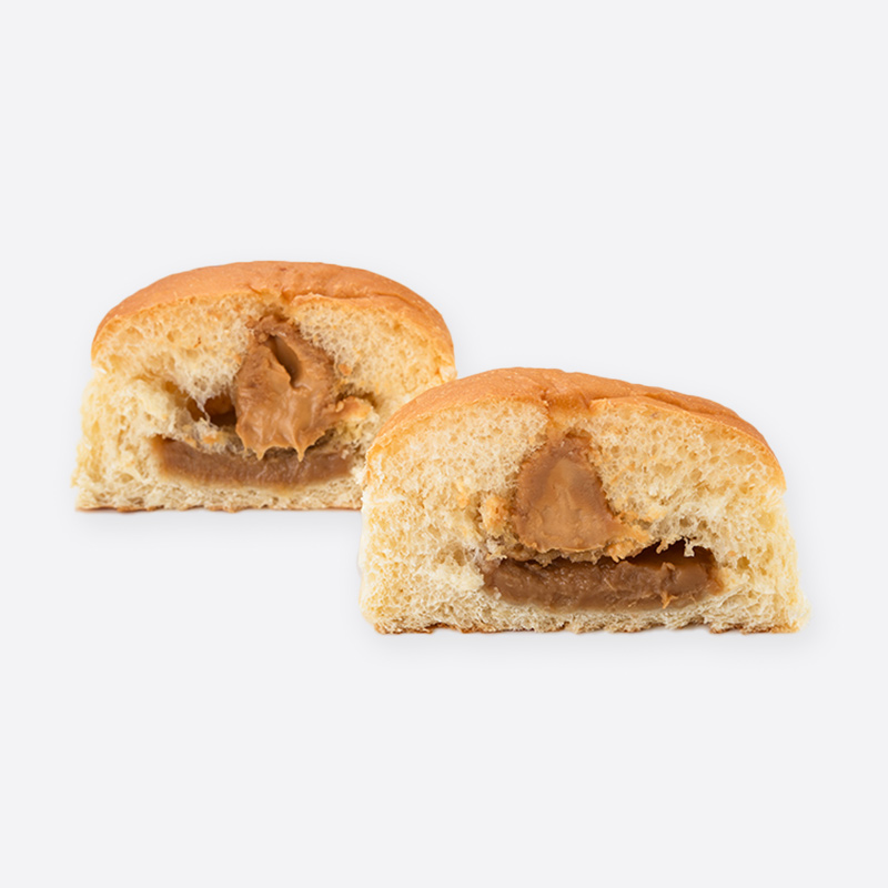 菓子のロングセラー商品「チロルチョコ」とコラボした菓子パン。きなこ風味の生地で求肥ときなこクリームを包んで焼き上げ、きなこチョコを注入しました。