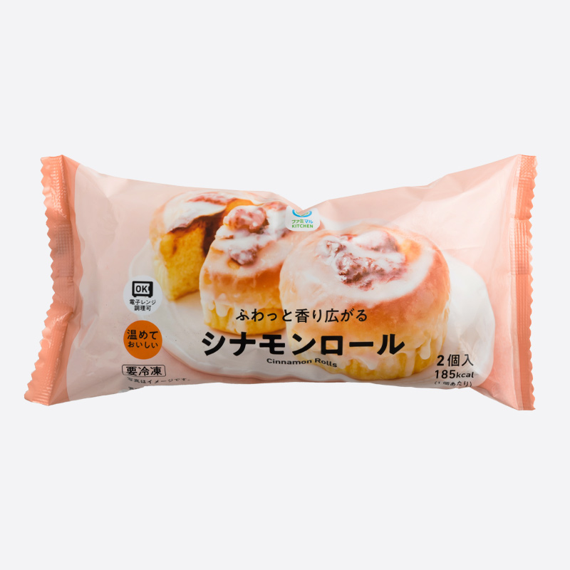 ファミマルKITCHEN冷凍スイーツ・ブレッドシリーズ。ふわもち食感のブリオッシュ生地、濃厚なシナモンの香りと味わいを楽しめるシナモンロールです。レンジで温めることでシナモンの香りが広がります。2個入り。※数量限定です。