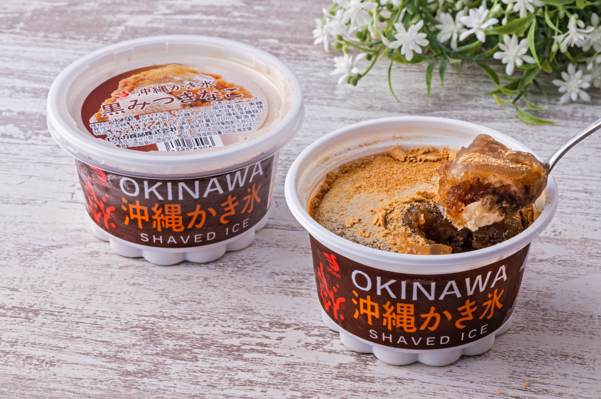 また、「沖縄かき氷 黒みつきなこ」もおすすめです。沖縄県産の黒糖を使用した、かき氷とクリームの2層仕立てのカップアイス。上部にもちソースときなこをトッピングしました。九州、沖縄限定商品です。
