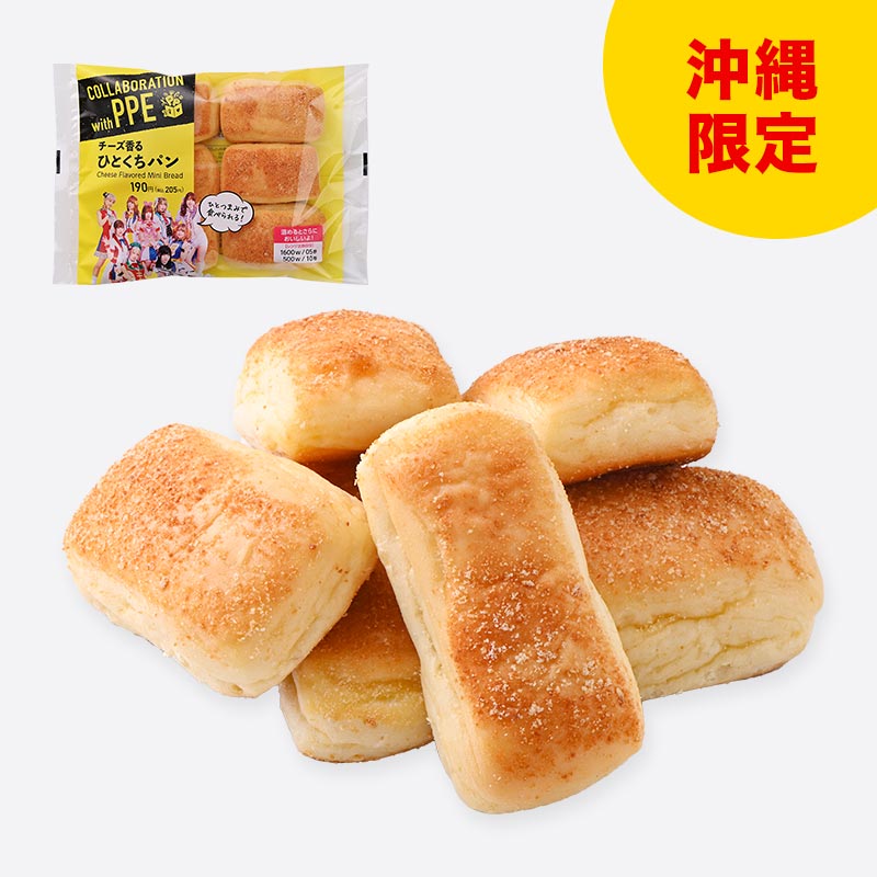 【えなこ・PPEプロデュース企画商品】 北海道チェダーチーズを使用したシートを生地に折り込みました。その生地に風味豊かなパルメザンチーズをトッピング、焦がしチーズパンのイメージで焼き上げました。小腹が空いたときにぴったり、ひと口サイズの大きさも魅力的な商品です。