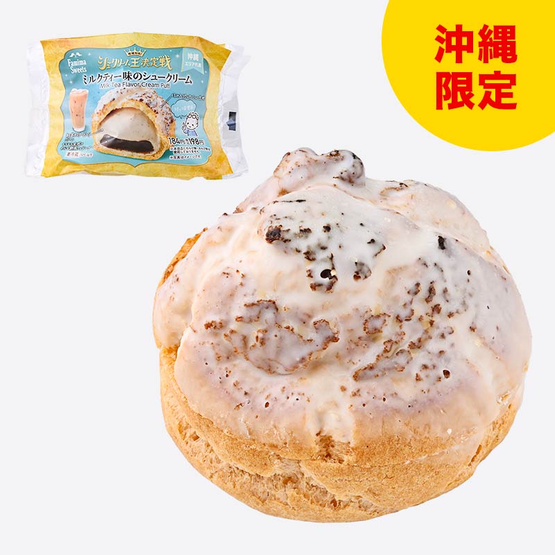 くるみ入りクッキーシュー生地に、紅茶カスタード入りクリームともちもち食感のわらび餅風フィリングを入れたシュークリームです。