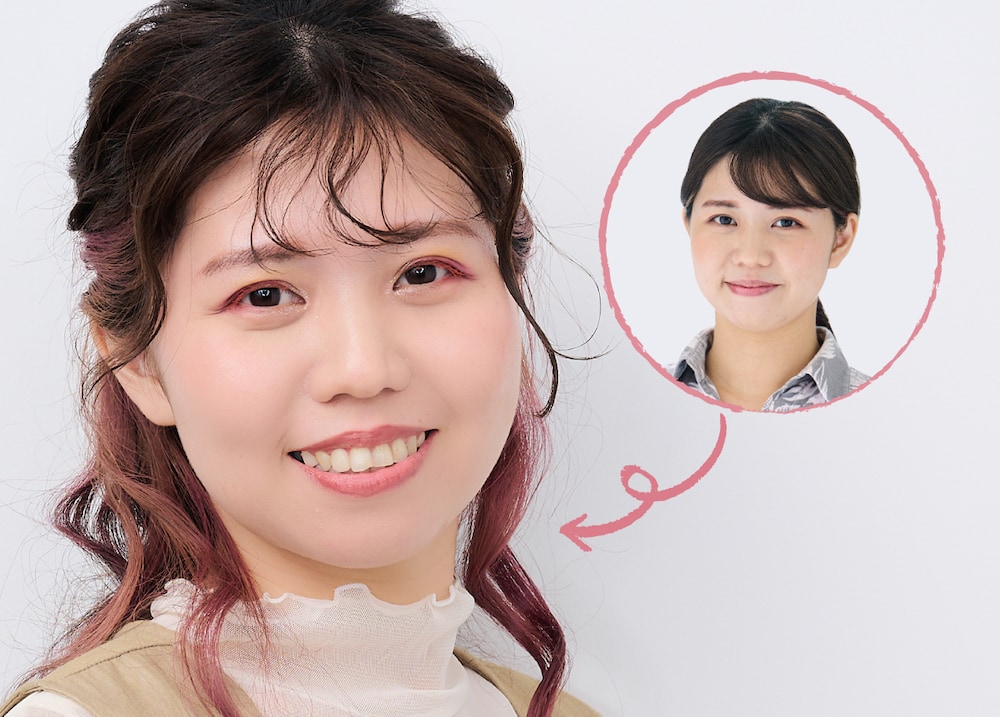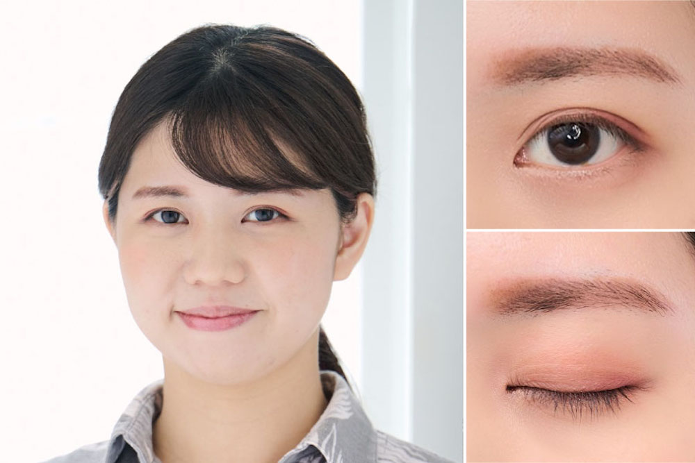 ということで、與那嶺さんにオフィス向けのブラウン系ナチュラルメイクをしていただきました▼