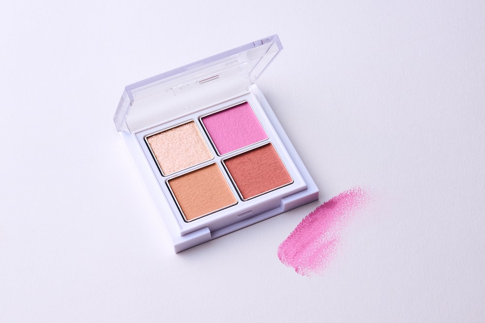 今度はこちらの上段2色、ピンクとパールを使ってカラーメイクを進めていきます。