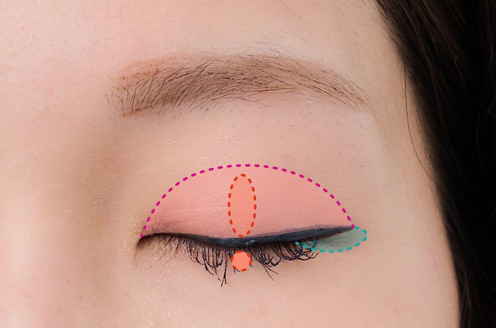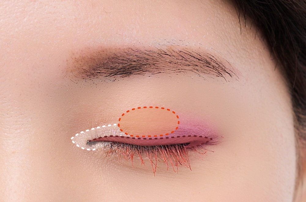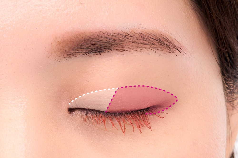 まぶた全体にピンクを入れると派手になりますが、目尻だけなら取り入れやすく、さらに切れ長な目になりますよ!