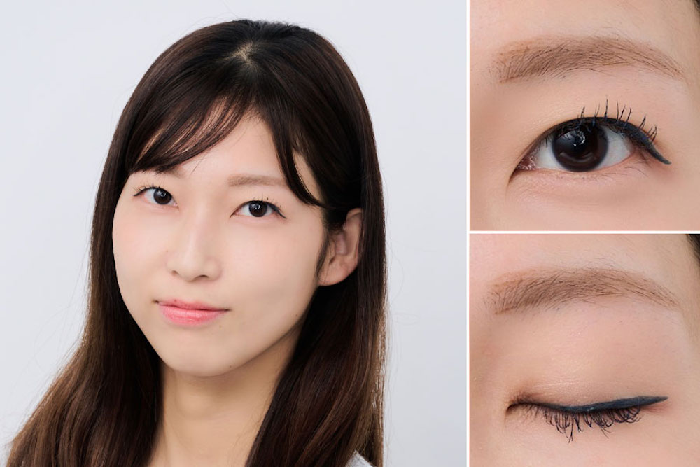 アイライナーを目尻より長めに入れることで、カラーがしっかり見えます。もちろん切れ長効果も!