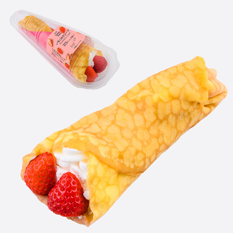 2023.01.10 いちごのクレープ ファミマ新商品 シェア Tweet 【ファミマのいちご狩り】フェア対象商品。もちもち食感のクレープ生地で2種類のクリームとスポンジ、いちごダイスを包み、フレッシュいちごをトッピングしました。 価格338円(税込) 発売日2023年1月10日 一部店舗にて取扱いのない場合がございます。 掲載の新商品は今後、パッケージ・規格・価格の変更及び販売終了となる場合がございます。