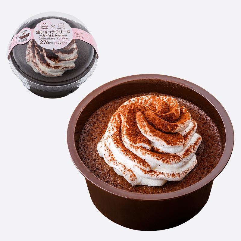大三萬年堂HANARE監修商品。ショコラテリーヌ生地の中に、こしあん、かのこ小豆を加え、ホイップをトッピング。和と洋が融合した新感覚スイーツです。