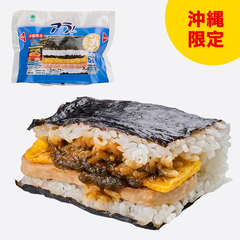 沖縄で昔からごはんのお供に人気の、のり佃煮「アラ!」を使用したサンドおむすびです。