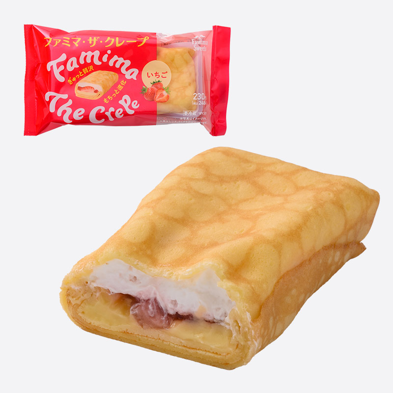 2023.03.14 ファミマ・ザ・クレープ いちご ファミマ新商品 シェア Tweet 練乳入りホイップクリーム、カスタード、苺(ハーフカット・ダイス)を、絶妙もちもち食感のクレープ生地で包みました。 価格248円(税込) 発売日2023年3月14日 一部店舗にて取扱いのない場合がございます。 掲載の新商品は今後、パッケージ・規格・価格の変更及び販売終了となる場合がございます。