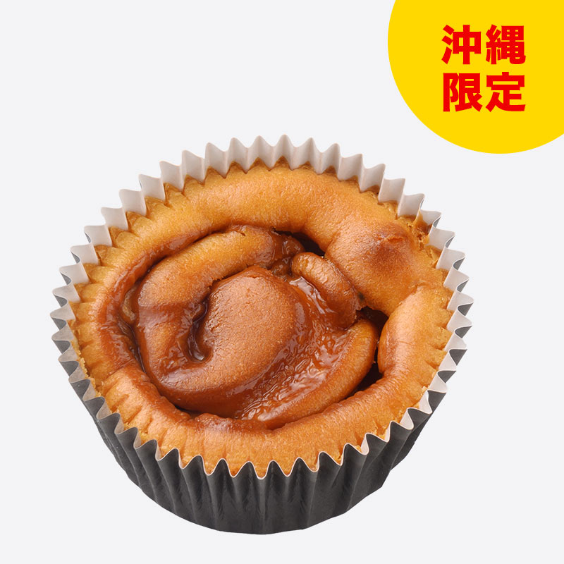 沖縄のきび糖を使用したやさしい味わいのチーズケーキ生地に、沖縄の塩を使用したキャラメルソースを絞り、焼き上げました。きび糖を使用したクッキークラムが、チーズケーキ生地に良く合います!