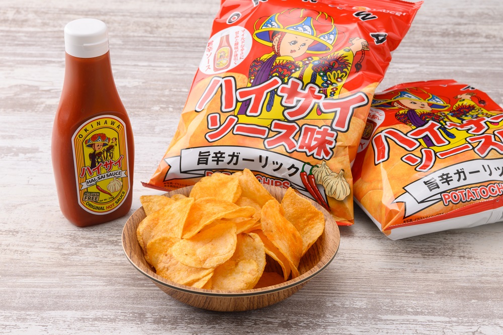 今回のおすすめは、沖縄生まれの旨辛調味料「ハイサイソース」味のポテトチップスです!ハイサイソースの特徴であるスパイシーで程よい甘味とコクのある『旨辛』味を、ポテトチップスでも再現しました。マイルドな辛さに甘味と酸味が後引く味わいです。