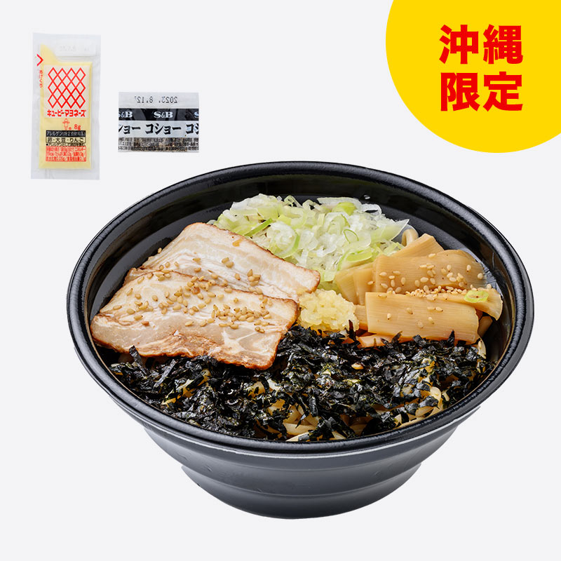 人気ラーメン店「麺やKEIJIRO」監修のまぜ麺。つるみがよいオリジナル配合の中華麺と、醤油ベースでにんにくの旨味が効いた鰹出汁のソースに、チャーシュー・メンマ・みじん切りにんにく・きざみのり・白ねぎ・白ごま・赤ラー油をトッピングしました。