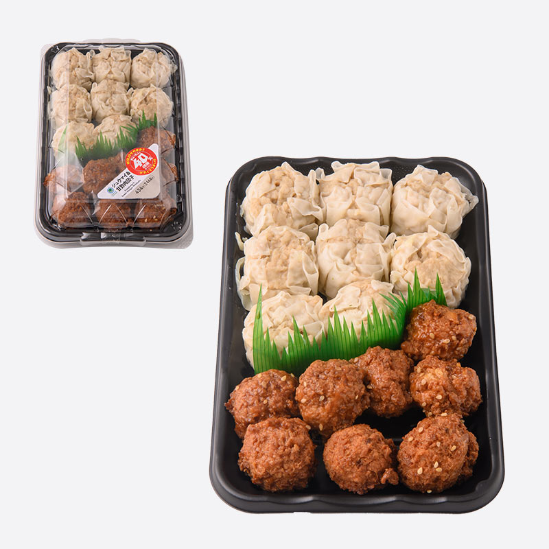 「だいたい40%増量作戦」対象商品です。通常よりもシュウマイ3個、肉団子3個を増量しました。