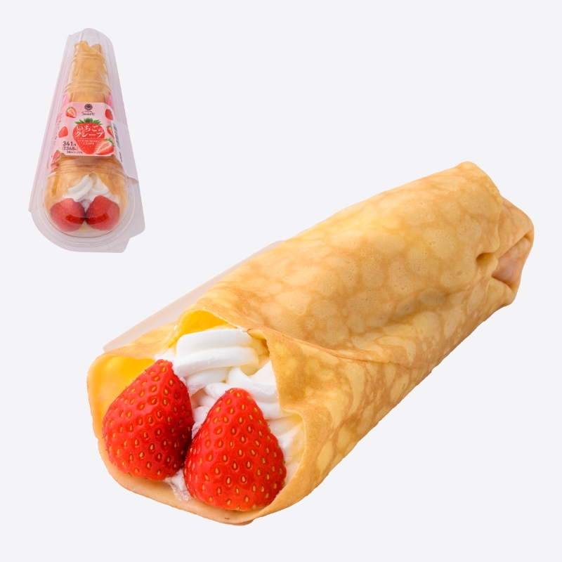 2024.01.09 苺のクレープ ファミマ新商品 シェア Tweet たっぷりのいちごクリームと練乳クリーム、いちごの果肉・ソース、スポンジをもちもち食感のクレープ生地で包んだ、この季節ならではのクレープです。 価格368 円(税込) 発売日2024年1月9日 一部店舗にて取扱いのない場合がございます。 掲載の新商品は今後、パッケージ・規格・価格の変更及び販売終了となる場合がございます。