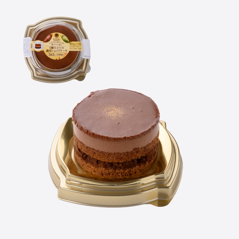 2024.01.30 5層仕立ての濃厚ショコラケーキ ファミマ新商品 シェア Tweet 華やかな香りが特徴のエクアドル産のファミリーマートオリジナルチョコレートを使用した、濃厚なショコラケーキです。 価格390 円(税込) 発売日2024年1月30日 一部店舗にて取扱いのない場合がございます。 掲載の新商品は今後、パッケージ・規格・価格の変更及び販売終了となる場合がございます。