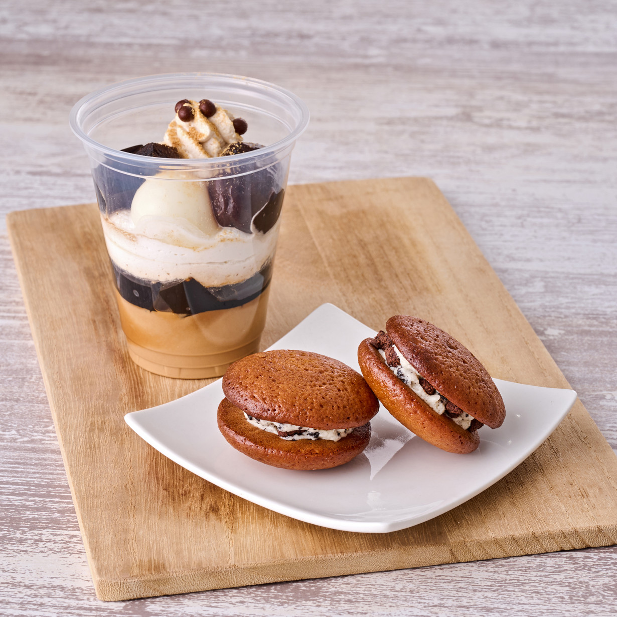 生クリームを配合したふんわり生地にクリーム(クッキー&クリーム)をサンドした仕立てです。