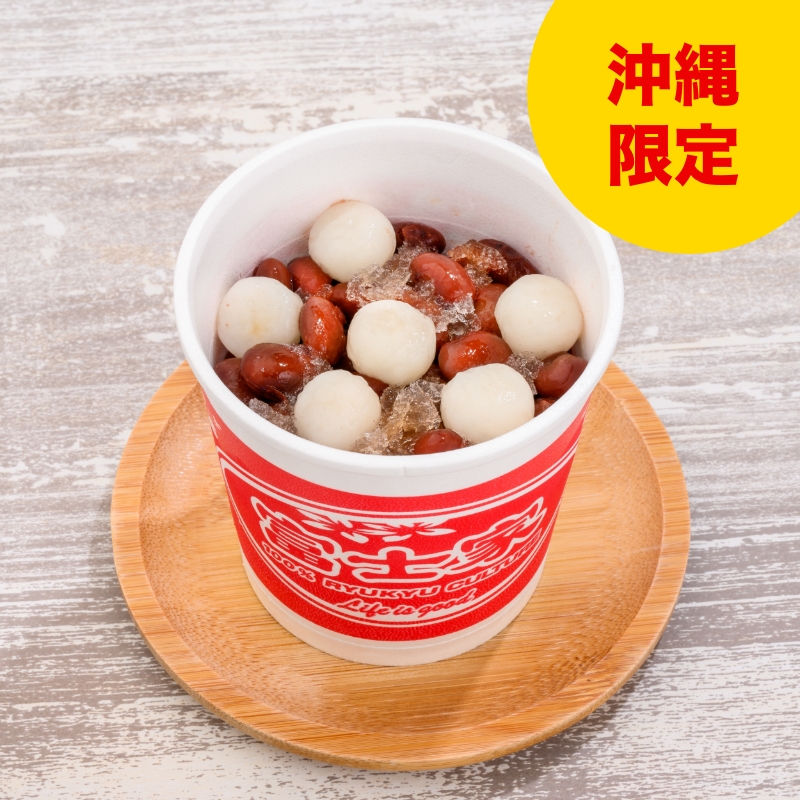 沖縄ファミマ限定フレーバーが更に美味しくなって再登場!白玉をよりやわらかくしました。まろやかさと口当たりを改善した黒糖蜜とじっくり煮込んだ金時豆、富士家オリジナルのシャリシャリ氷が特徴です。