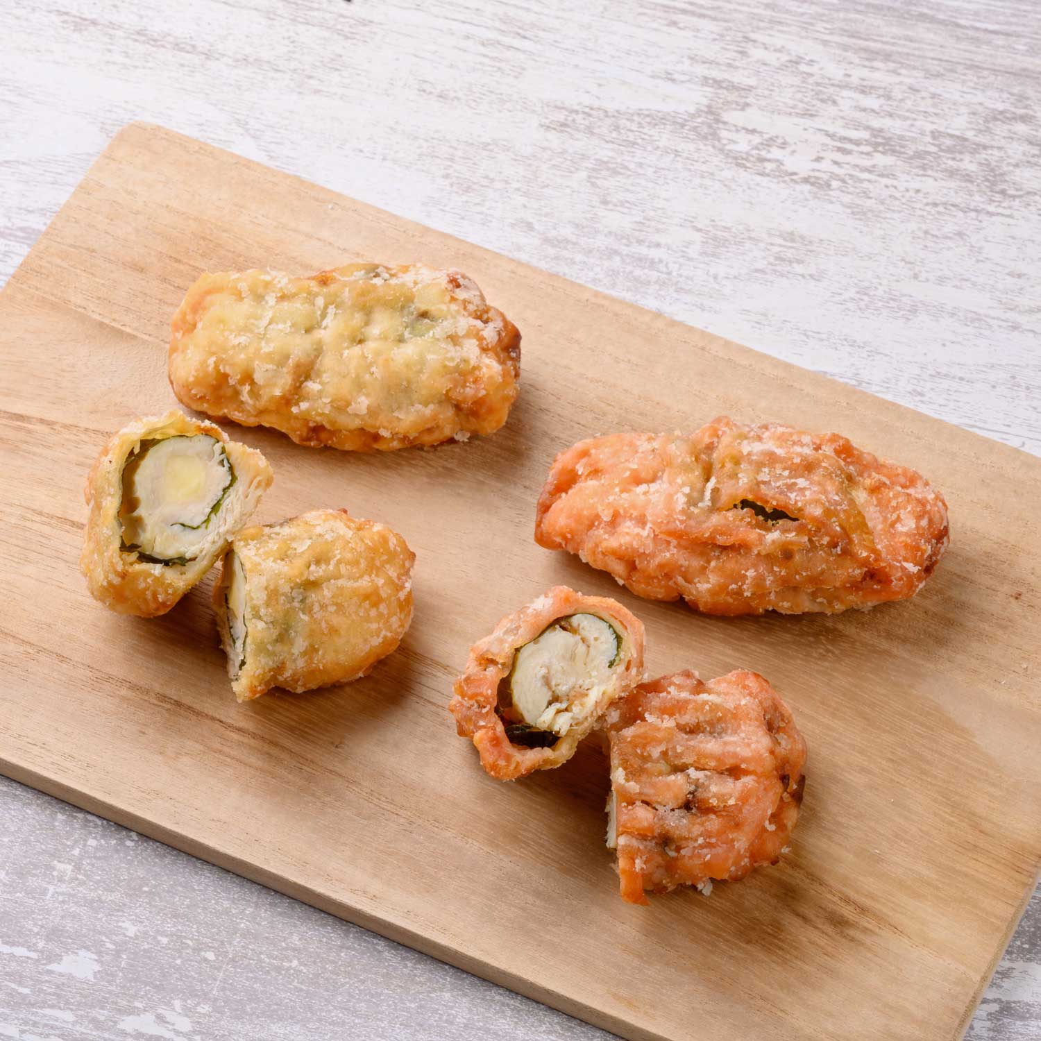 今週のおすすめは「鶏ささみしそ巻竜田(梅かつお味)」と「鶏ささみしそ巻竜田(チーズ味)」です。