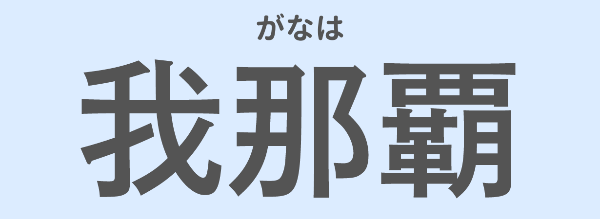 読み方は我那覇(がなは)です。沖縄県豊見城市我那覇が発祥と言われており、琉球王国時代に記録のある地名で、苗字にもなっています。琉球音は「ガナファ」で、「小さな漁場」が語源なのだとか。