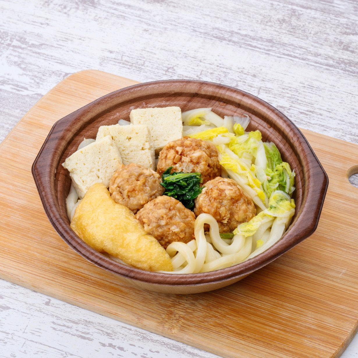 また、「肉団子あっさり塩鍋(うどん入)」もおすすめです。うどん、白菜、島豆腐、葉大根、肉団子、油揚げの具材を使用。鶏ガラベースのあっさりしたスープが特徴の鍋です。
