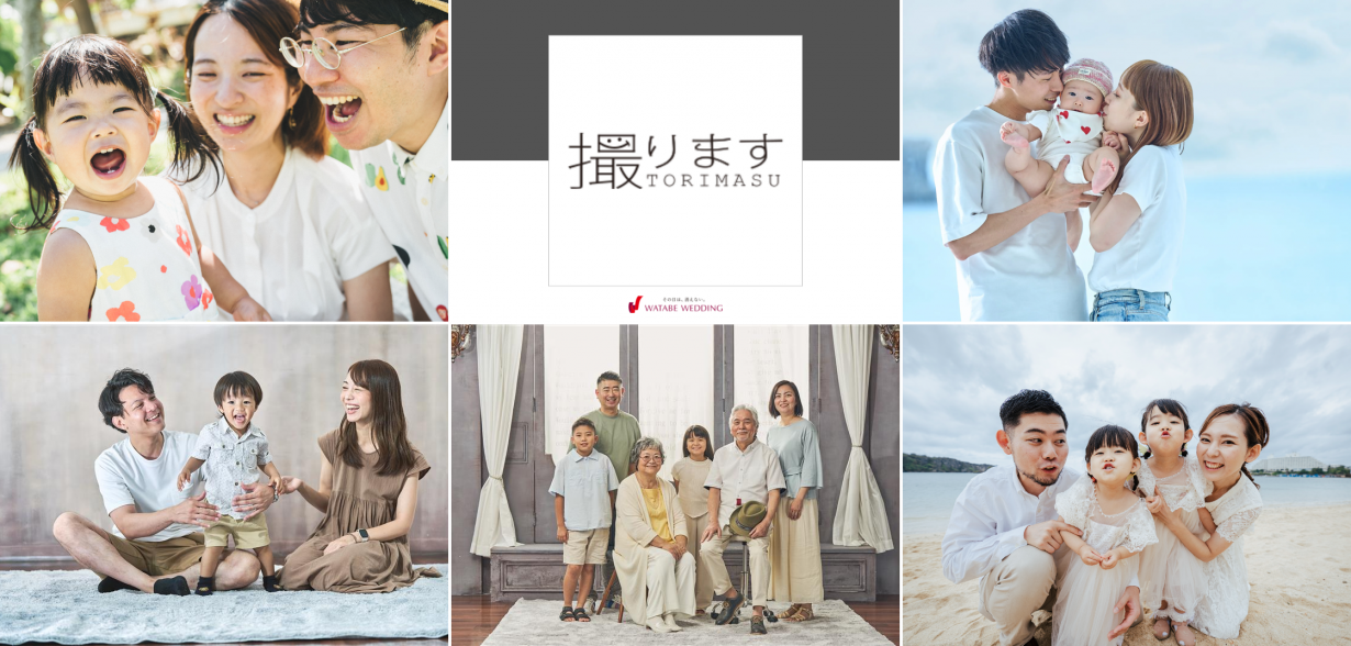 沖縄ファミリーマート×沖縄ワタベウェディングがお届けするフォトサービス「撮ります」では、今回ご紹介したようなお祝いシーンはもちろん、家族写真・アニバーサリーフォト・マタニティフォト・記念写真、さらに出張撮影など様々なシチュエーションに対応いたします。