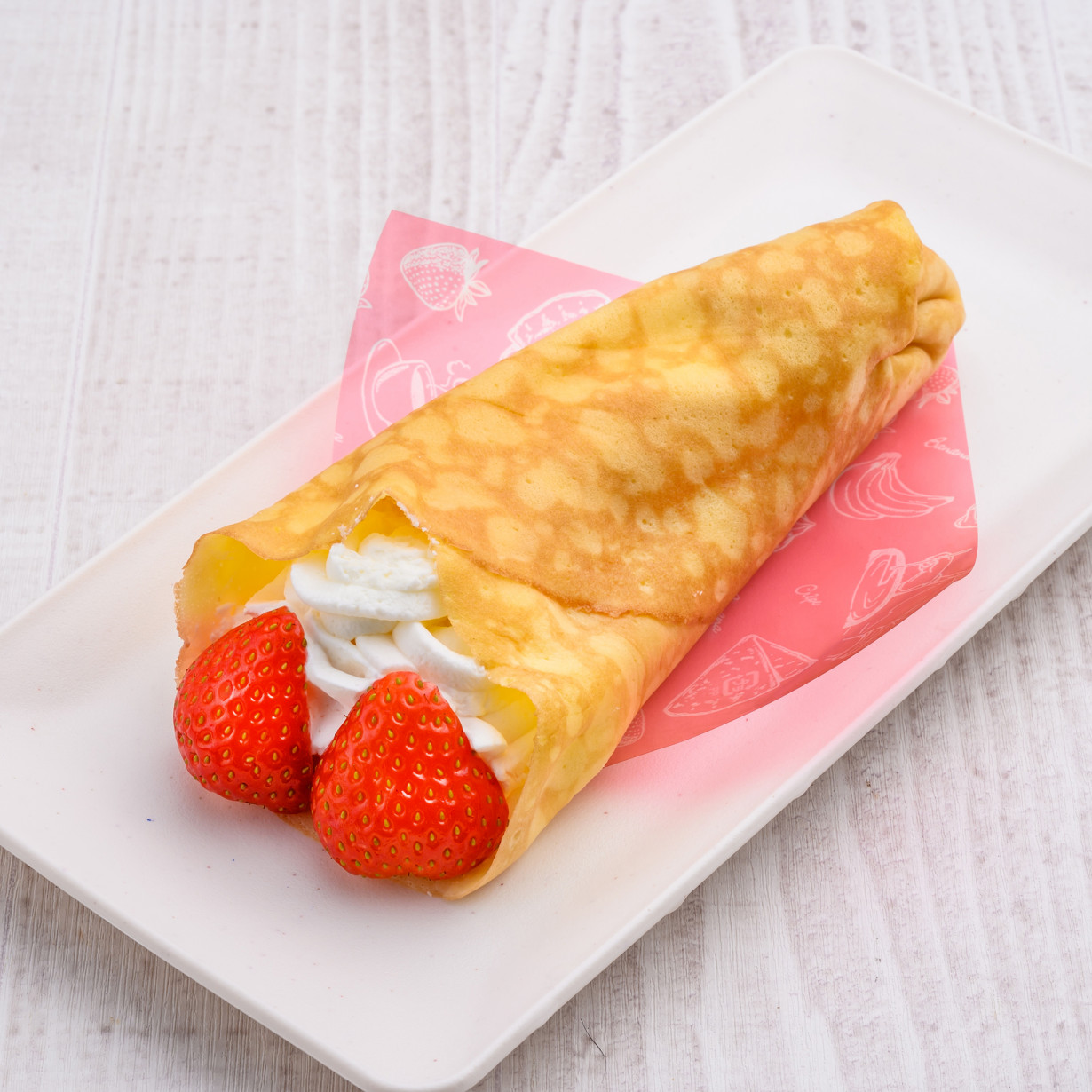 今週のおすすめは「いちごのクレープ」です。フレッシュないちごとこいうまクリームを楽しめるクレープです。