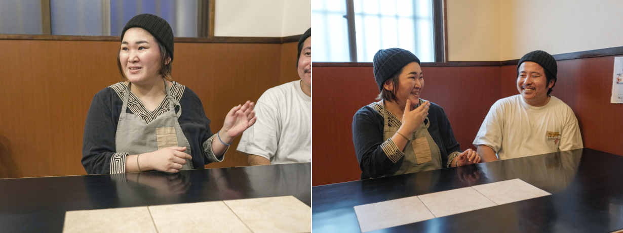 のれんをくぐった先で、笑顔が魅力的な店主 外間真悟さん・桃花さんご夫妻が出迎えてくれました。