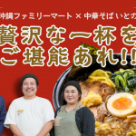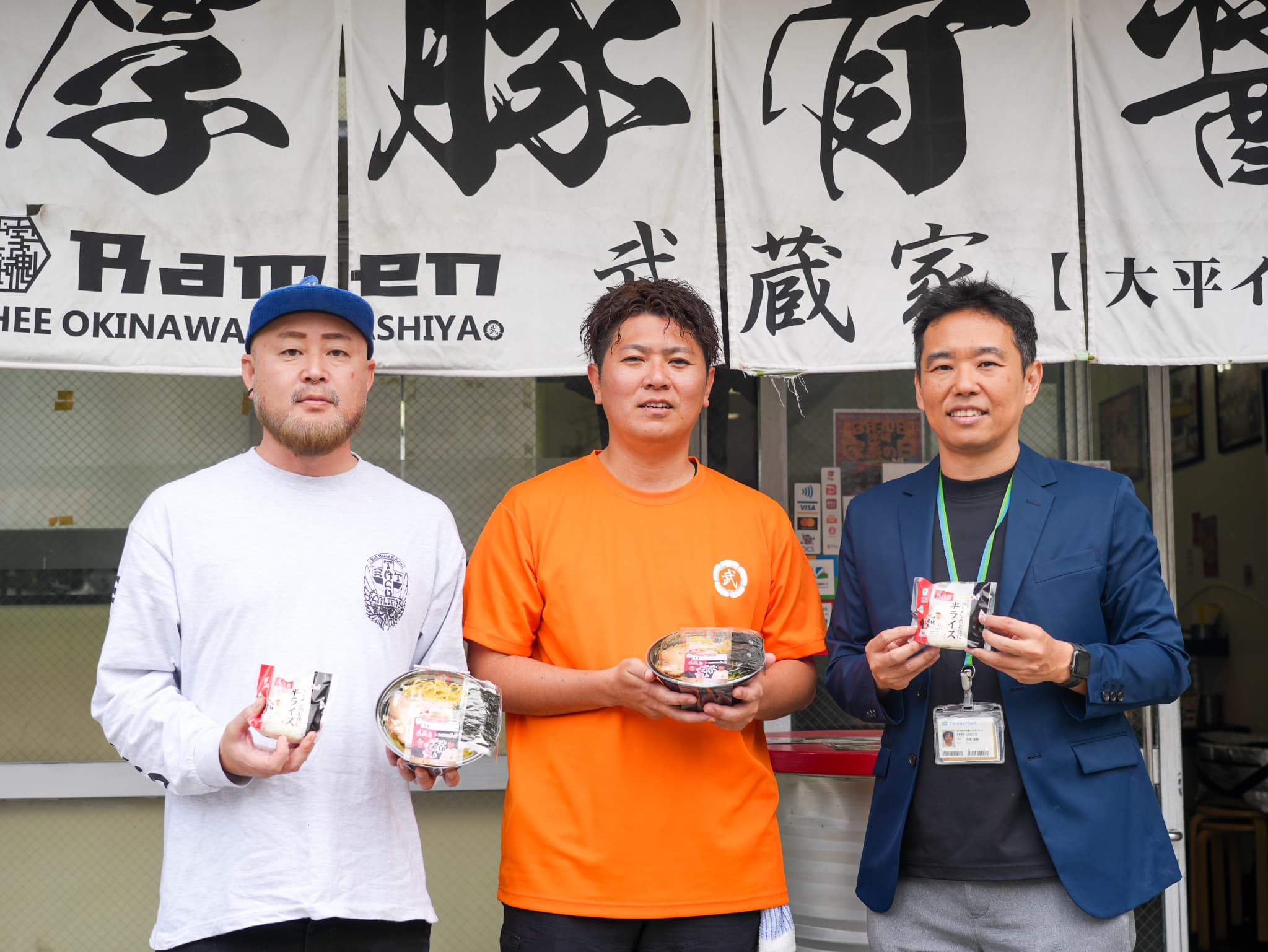 岸本さん、野崎さんにはロイヤリティ無しでご協力いただいており、「沖縄家系の日」を盛り上げることを目標に、三者一丸となって開発に取り組みました。沖縄ファミリーマートとしては、先人が築いてきたラーメン文化と、「沖縄家系の日」をきっかけに、沖縄のラーメンの歴史が伝わり、また、ラーメンファンが増えていけばいいなと思います。まだ家系ラーメンを食べたことがない方がいたら、ぜひ一度お試しいただいて、お店(Ramen 武蔵家さんやトルネコパーパさん)にも足を運んでいただきたいなと思います!