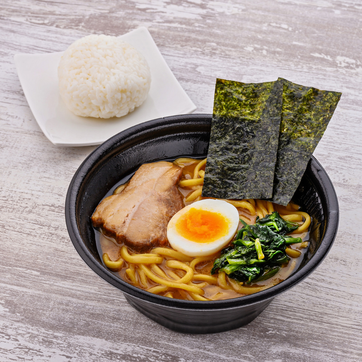 今週のおすすめは「共闘!沖縄家系ラーメン」です。人気ラーメン店、Ramen 武蔵家×トルネコパーパ監修のラーメン。じっくり炊き出した豚骨をベースに醤油を効かせたスープと硬さや粘りが特徴の中太麺を合わせました。