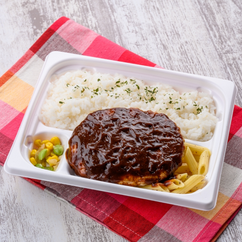 【ハインツコラボキャンペーン対象商品】 ハインツのデミグラスソース、トマトペースト、ブラックペッパーなどを配合した濃厚なデミグラスソースと食べ応えのあるハンバーグを組合わせたお弁当です。