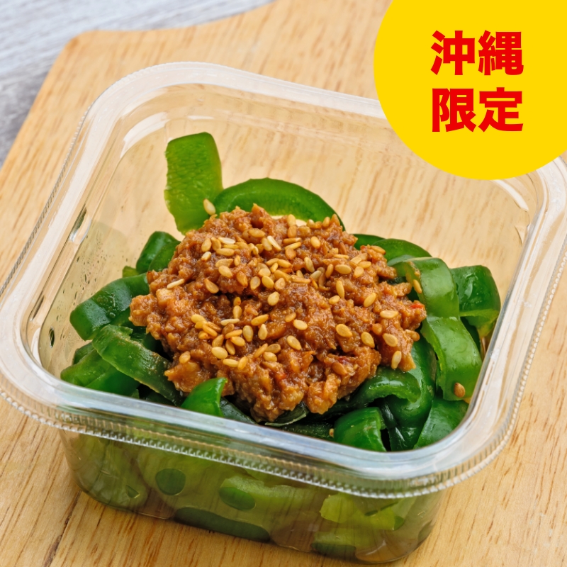 沖縄県産ピーマンを使用したおかずにもおつまみにもおすすめなピリ辛肉みそピーマンです。