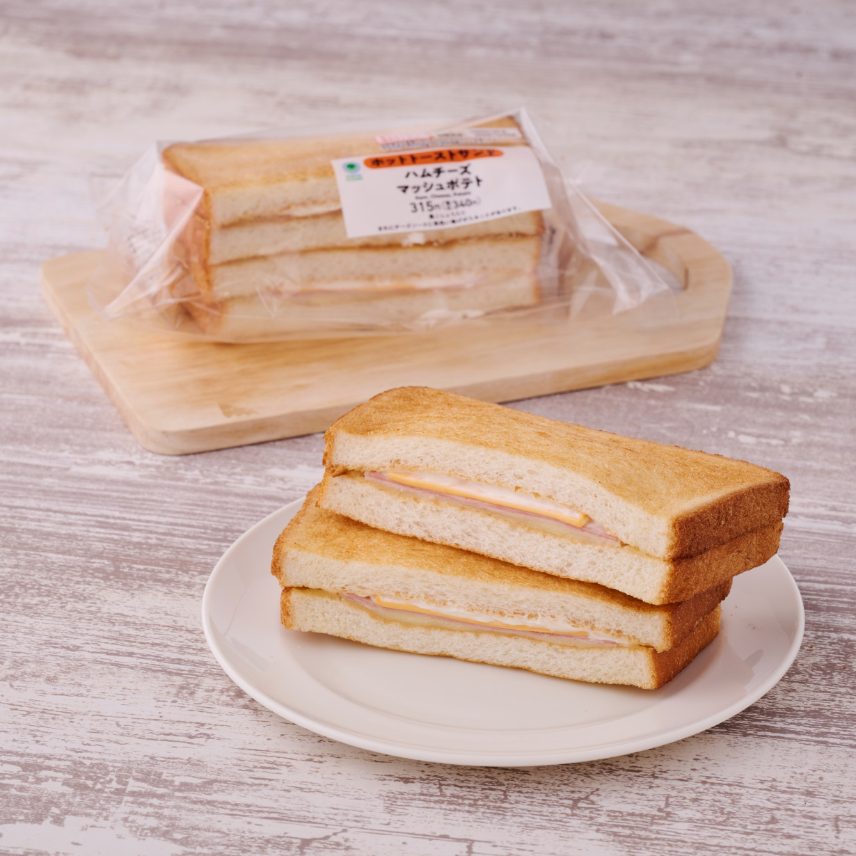 また「ハムチーズマッシュポテト」もおすすめです。マッシュポテトにハムとチーズを組合わせた温めて美味しいホットトーストサンドです。