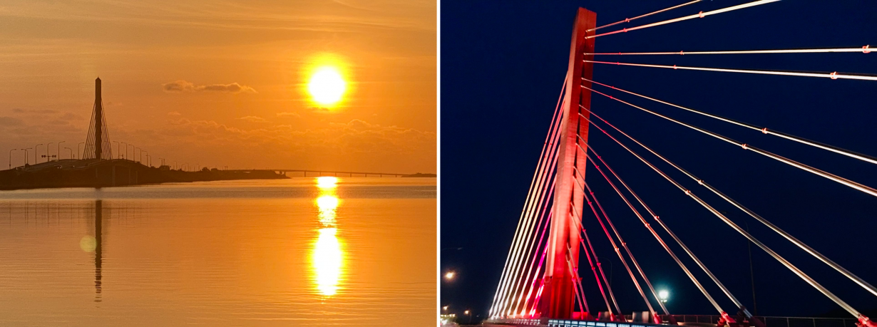 実は…私が個人的におすすめしたいのは、「早朝の海中道路のドライブ」ですね。空に昇る朝陽を眺めながらドライブする時間が、もう本当に格別なんです!日中とは違う雰囲気を味わえるので、ぜひ早朝ドライブも試してほしいです。もちろん、ドライブに限らず、サイクリングやウォーキングコースとしてもおすすめです!夜は平安座海中大橋がライトアップされているので、朝昼晩で違った表情を楽しめますよ。