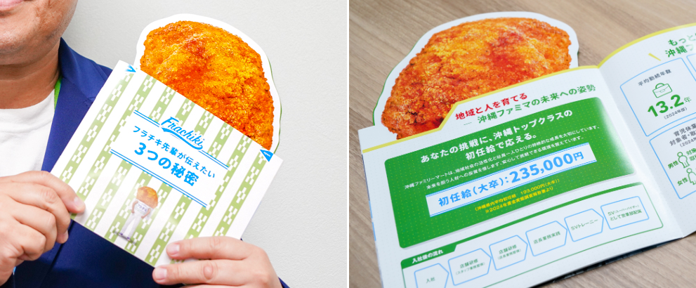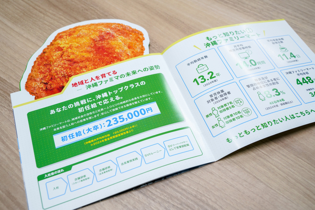 記事内の写真にも何度か登場していますが、沖縄ファミリーマートの会社案内が「フラチキ型」になっているのをご存知でしたか?
