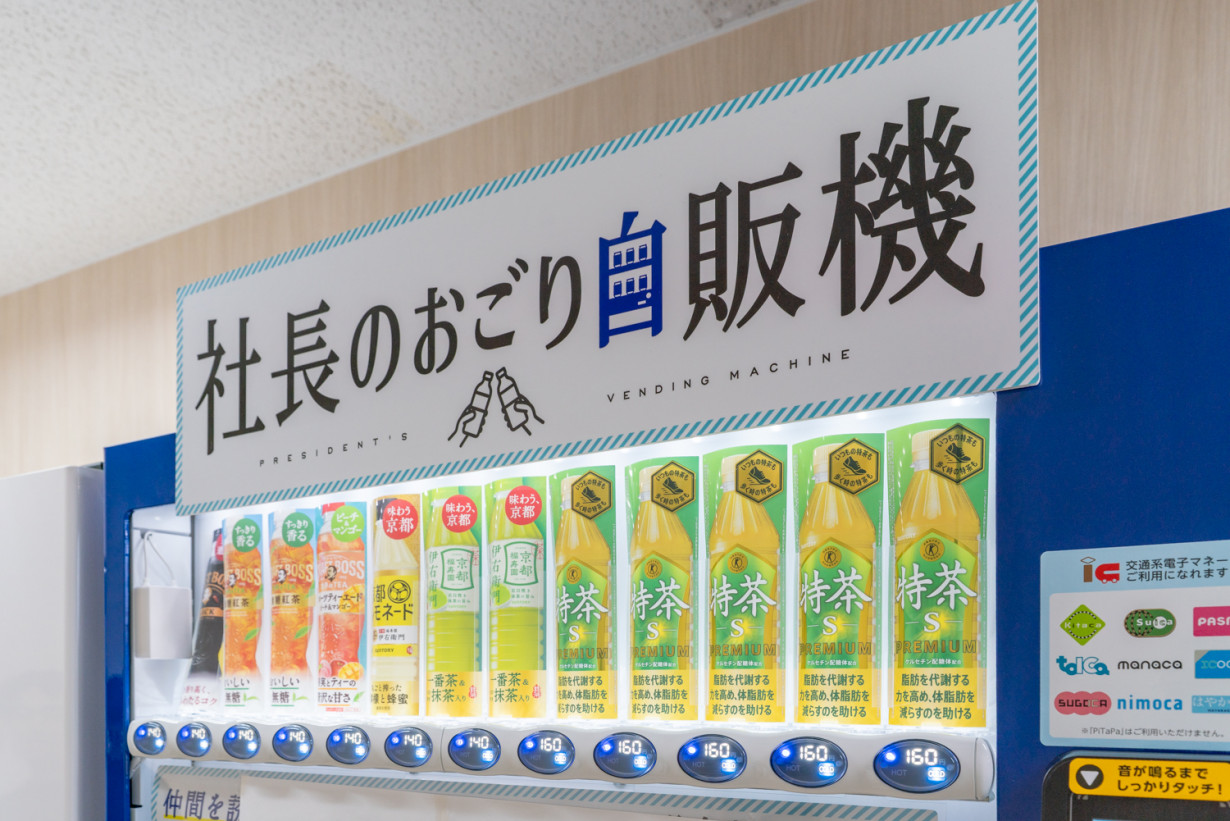 そして羨ましいのが…自動販売機のうち1台が「社長のおごり」仕様!