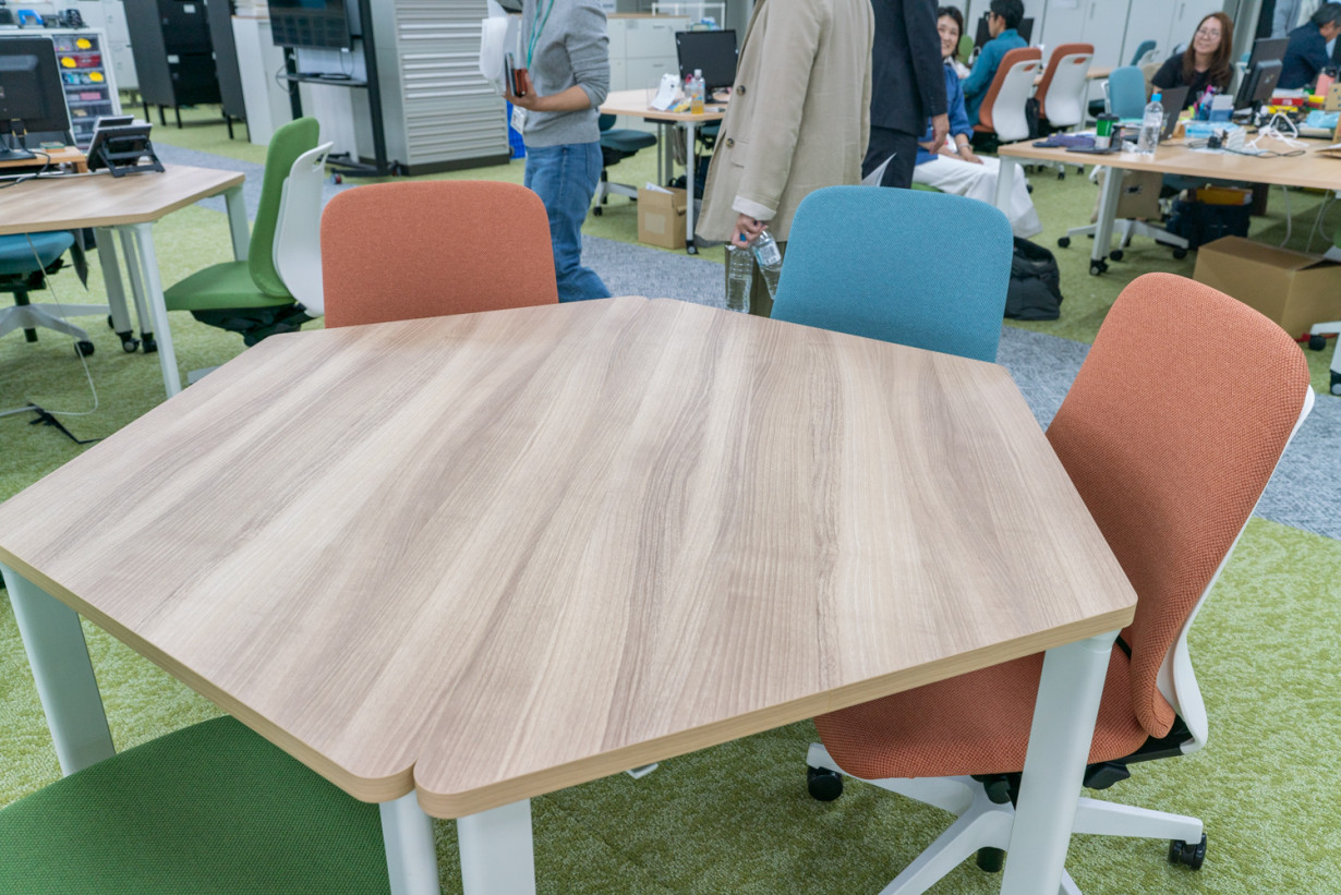 営業部のエリアで目を引いたのが、テーブルの形!
