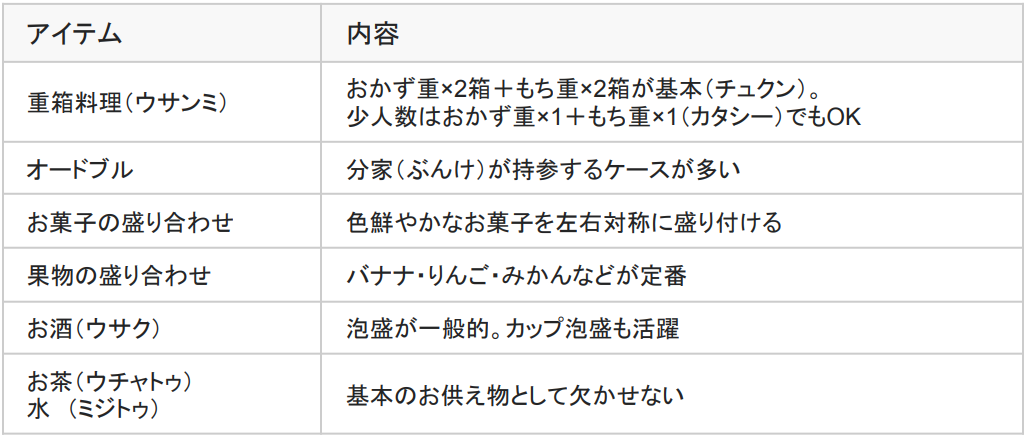 「今年は誰が何を用意するの?」「重箱はどこで予約すればいい?」「ウチカビやヒラウコーも一緒に買えたら楽なのに」