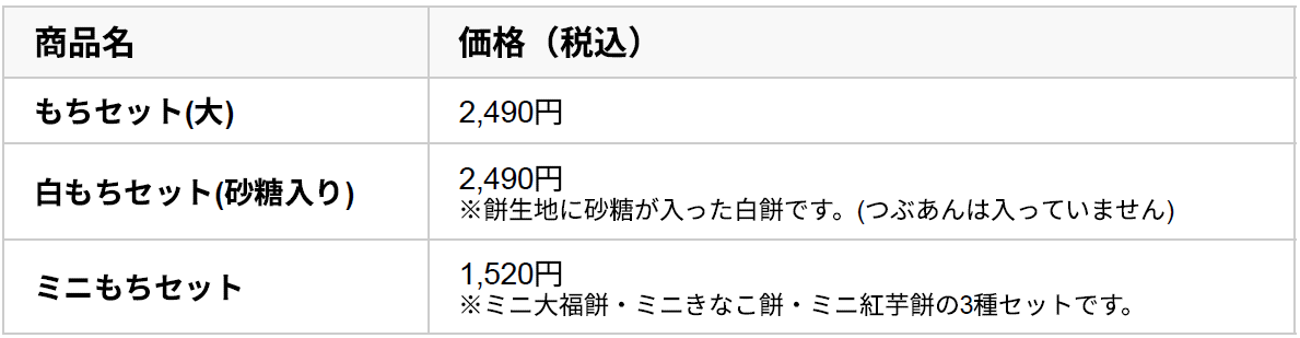 □ ミニもちセット ……………………… 少人数のシーミーに