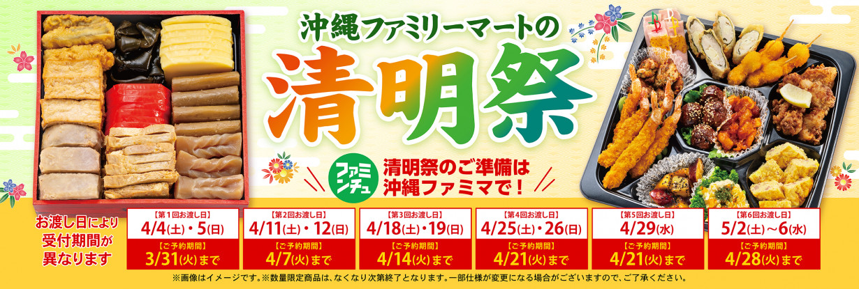 沖縄ファミリーマートでは、毎年シーミーシーズンに合わせて重箱・オードブル・もちセットなどを予約注文で承っています。