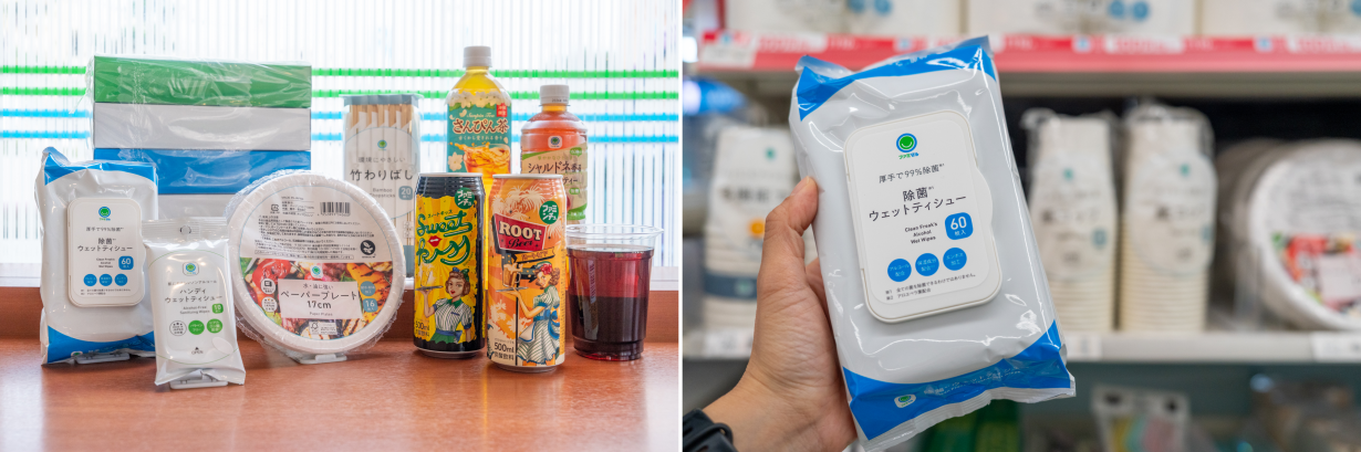 そんな時に助かるのが、ウェットティッシュやボックスティッシュ、お箸・お皿などの消耗品類です。
