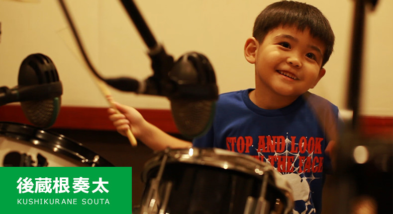 今回のキラキラ☆キッズは、小学1年生にして大人顔負けのドラムテクニックを持つドラマーの後蔵根奏太くん(6)。その腕前を生バンド演奏で披露していただきました。
