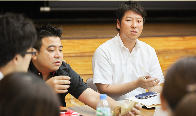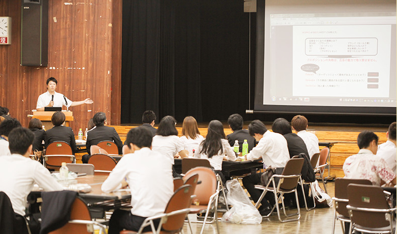 さっそくCM企画開始!「CMプランについて、事前に構想を練ってきたチームはあるかな?あるなら早速、コンセプトを聞いてみようか」そう、みんなに投げかけたのは、県内外で手腕を振るう映像のプロ、下地さん。実戦型を謳う通り、学Pはプロに直接指導を受けながら体験できるインターシップ。沖縄ファミマならではのネットワークで、CMも考え方から準備、撮影まで、現場のプロに直接指導を受けることができます。それでは少し、その様子をのぞいてみましょう。